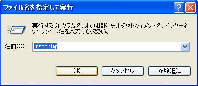 まず、「ファイル名を指定して実行」から mscofig と入力し実行します。