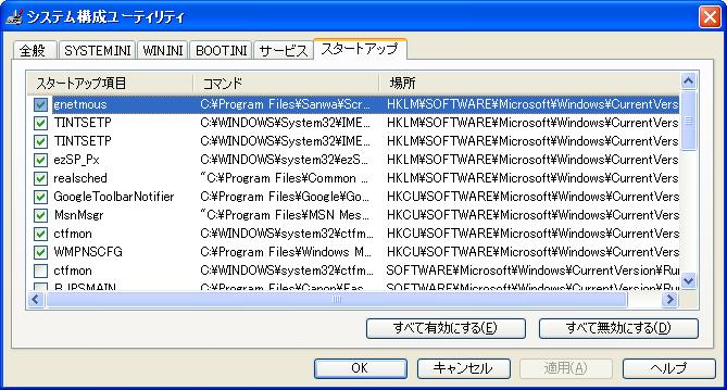 そう。これらがWindowsと共に起動されるアプリケーションの一覧です。