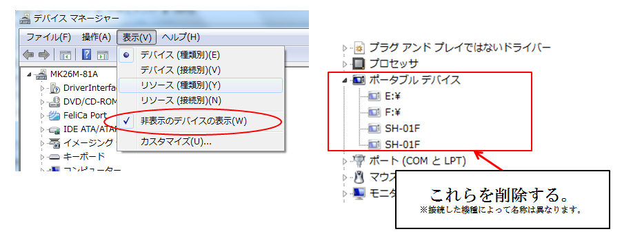 で、表示されたポータブルデバイスを全て削除しましょう。